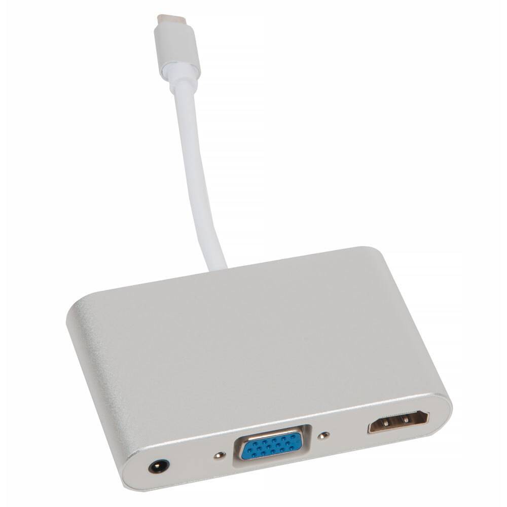 Адаптер HUB многопортовый USB-C ↔ 1x HDMI 2.0, 1x VGA, 1x AUX Jack 3.5 / серебристый