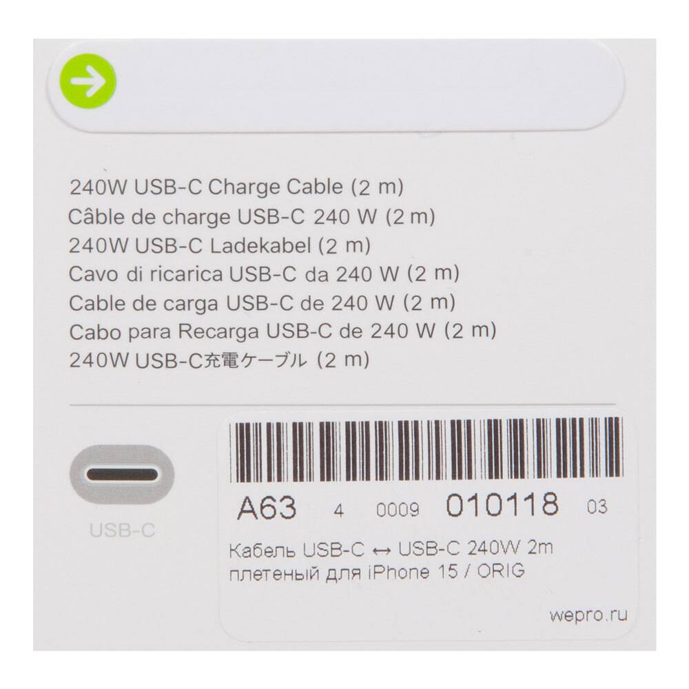 Кабель USB-C ↔ USB-C 240W 2m плетеный для iPhone 15 / ORIG