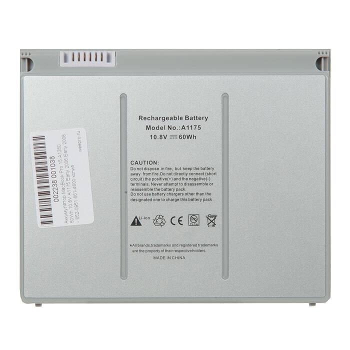 Аккумулятор MacBook Pro 15 A1260 60Wh 10.8V A1175 Early 2006 Early 2008 652-0951 661-4600 661-4262 020-4930-A 661-3864 661-4185 / AA
