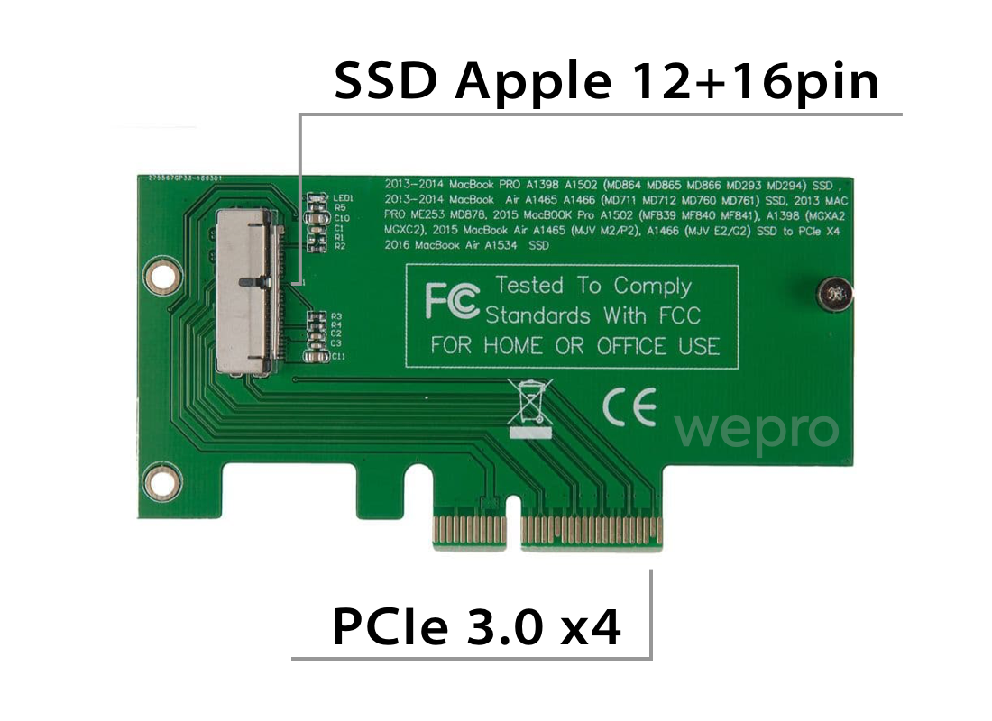 Плата расширения для SSD Apple 2013 - 2017 на PCIe x4 / NFHK N-2013