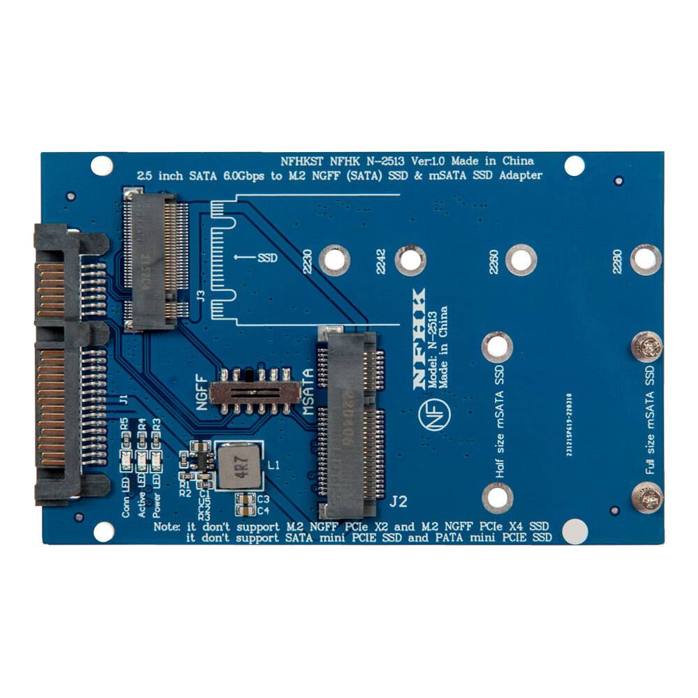 Переходник для SSD M.2 SATA / mSATA для установки в разъем 2.5 SATA3 / NFHK N-2513 Blue