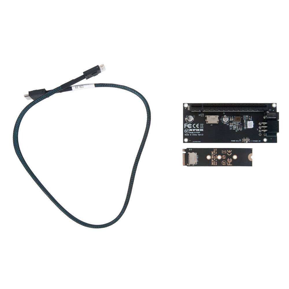 Переходник для SFF-8612 Oculink в M.2 NVMe eGPU + плата с доп питанием и разъемом PCIe x16 и SFF-8611 + кабель данных / NFHK N-8611C N-PU01
