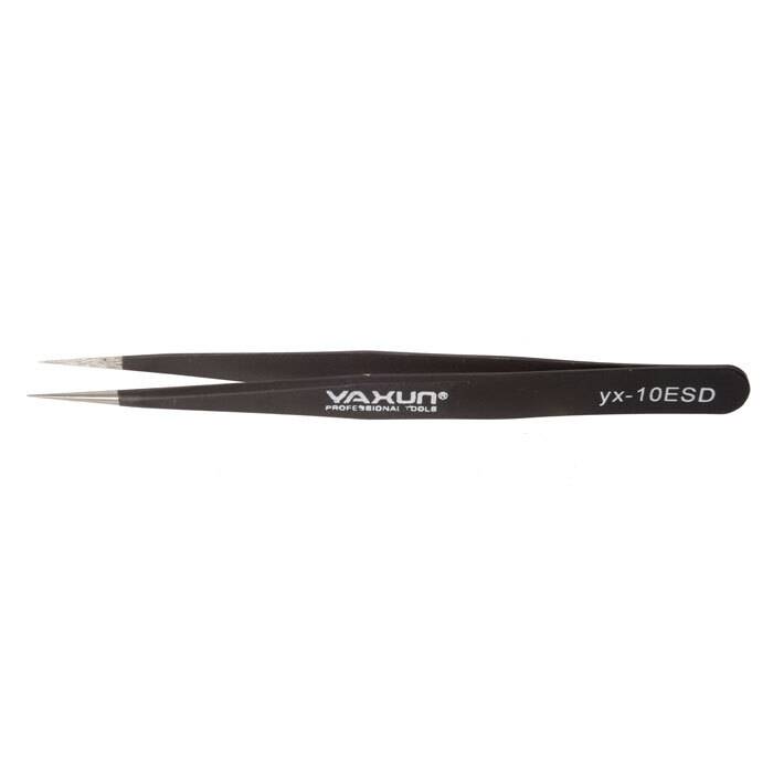 Пинцет YAXUN 10ESD с острыми кончиками захватный прецизионный предназначен для тонких монтажных работ. Пинцет незаменим во время пайки и просто он прекрасный помощник при монтаже и демонтаже электронных компонентов. Изготовлен из высокопрочной нержавеющей стали, немагнитный, устойчивый к кислотам с матовой обработкой поверхности. Пружинная высокопрочная сталь и антибликовая черная матовая поверхность пинцета ESD-10 обеспечивают удобство и комфорт при выполнении любых работ в областях электроники, точной механики и робототехники.
