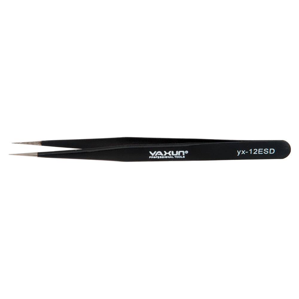 Пинцет YAXUN 12ESD с острыми кончиками захватный прецизионный предназначен для тонких монтажных работ. Пинцет незаменим во время пайки и просто он прекрасный помощник при монтаже и демонтаже электронных компонентов. Изготовлен из высокопрочной нержавеющей стали, немагнитный, устойчивый к кислотам с матовой обработкой поверхности. Пружинная высокопрочная сталь и антибликовая черная матовая поверхность пинцета ESD-10 обеспечивают удобство и комфорт при выполнении любых работ в областях электроники, точной механики и робототехники.